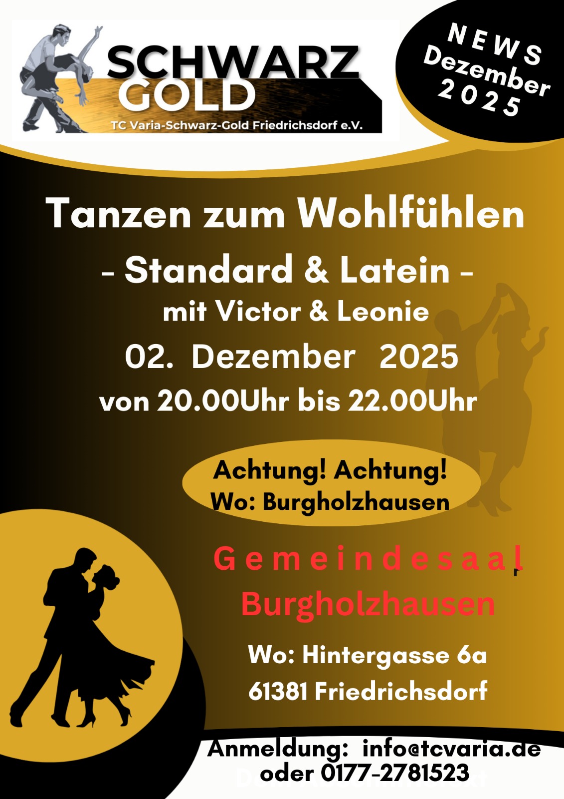 Nov. 28 2025 Aus Standard & Latein am 2. Dezember 2025 Von kvs Beitrags-Navigation Vorheriger BeitragZurück Neujahrs-Tanzkaffee am 11. Januar 2026